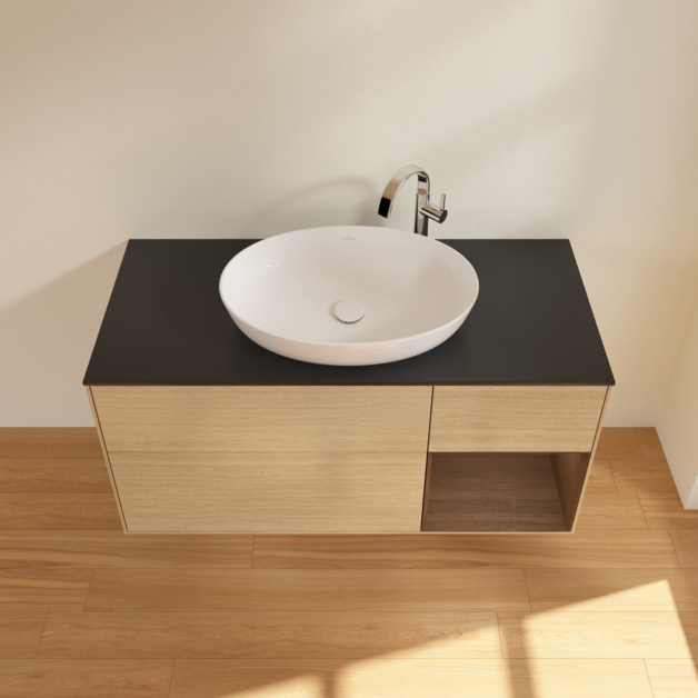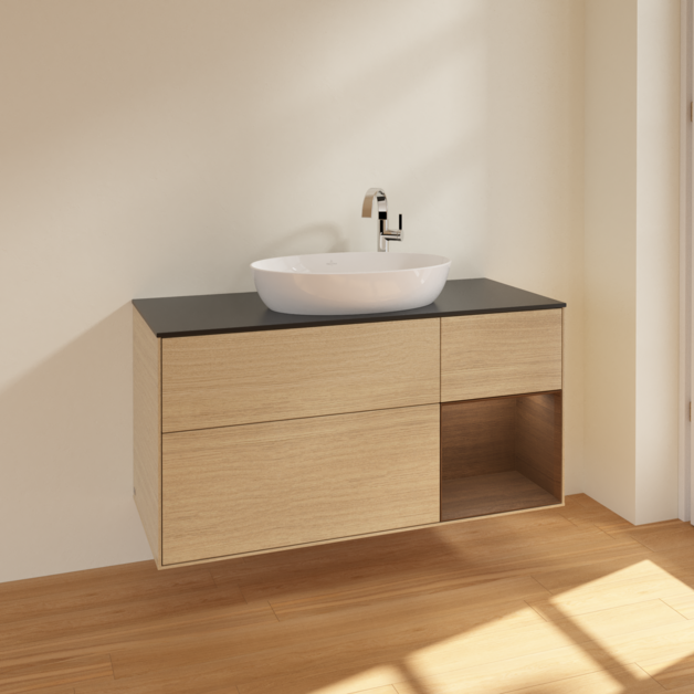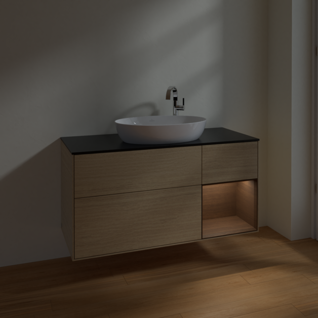 Тумба під раковину Villeroy & Boch Finion 120х50,1 см з підсвічуванням МДФ шпон дуба/скло чорне матове F952GNPC