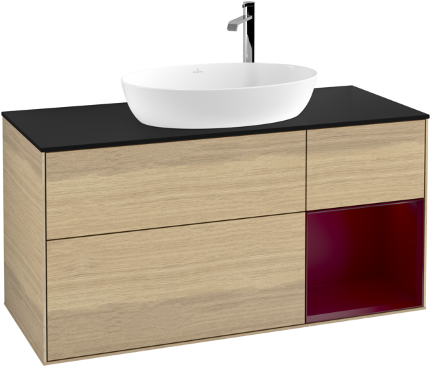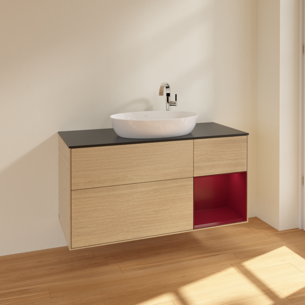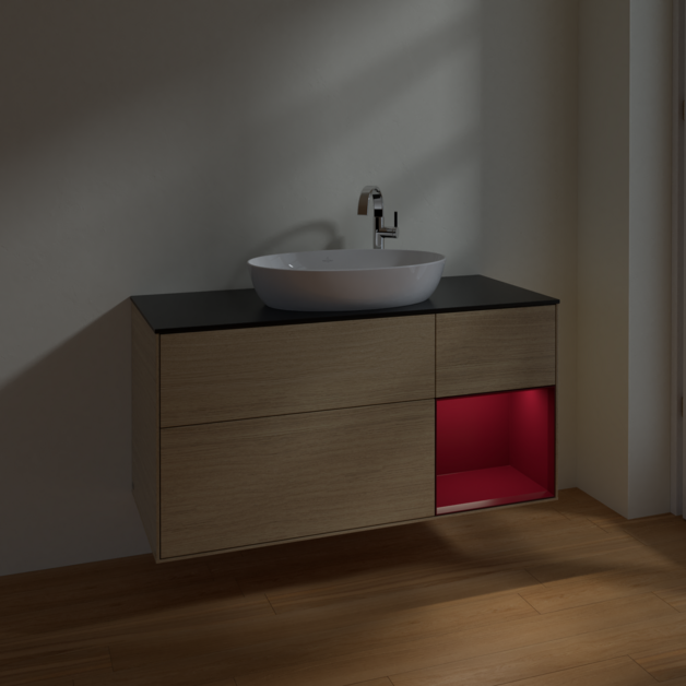 Тумба під раковину Villeroy & Boch Finion 120х50,1 см з підсвічуванням МДФ шпон дуба/скло чорне матове F952HBPC
