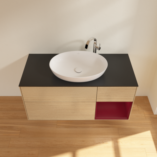 Експресивний дизайн та вишукане обладнання - Колекція меблів для ванних кімнат Villeroy & Boch Finion ідеально підходить. Створюється одна система підсвічування меблівПевна атмосфера у вашій ванній кімнаті, а також модульні полиці та шафи різних кольорів забезпечують його індивідуальність. Меблі для ванної кімнати з колекції Villeroy & Boch Finion з товстими стінамиЛише 8 мм підкреслює стислість дизайну.