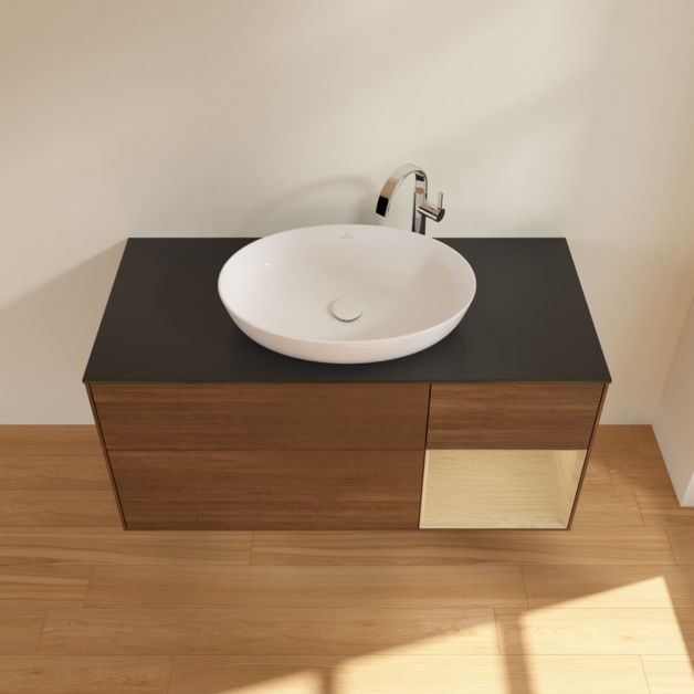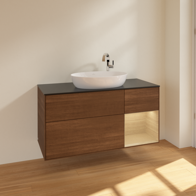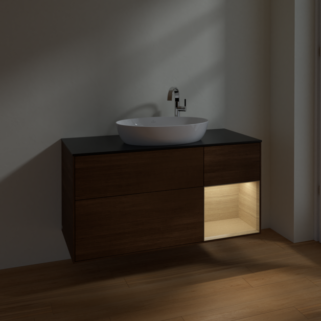 Тумба під раковину Villeroy & Boch Finion 120х50,1 см з підсвічуванням МДФ шпон волоського горіха/скло чорне матове F952PCGN