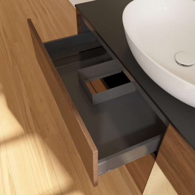 Повний розширення . Завдяки повній функціїГравці ящиків можуть бути повністю розширені. Весь їх вмістЦе добре видно і зручно його отримати. Більше не потрібно заглиблюватисяДовгі відсіки ящика - завдяки меблям у ванній кімнаті з повнимВи отримуєте повний огляд.