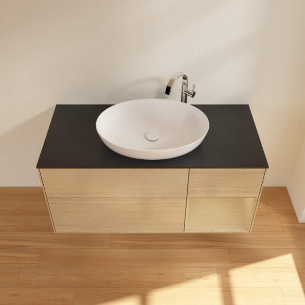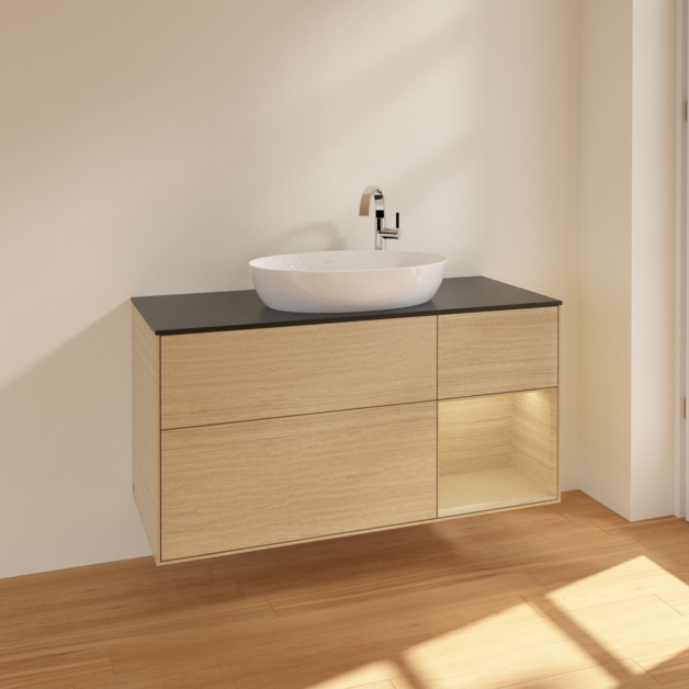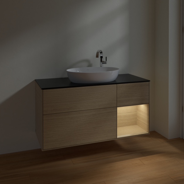 Тумба під раковину Villeroy & Boch Finion 120х50,1 см з підсвічуванням МДФ шпон дуба/скло чорне матове F952PCPC