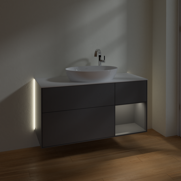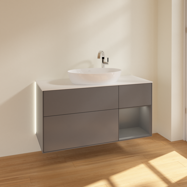 Тумба під раковину Villeroy & Boch Finion 120х50,1 см з підсвічуванням антрацит матовий лак/скло біле матове G951GKGK