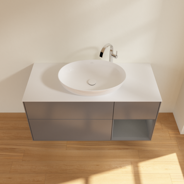 Експресивний дизайн та вишукане обладнання - колекція меблів для ванних кімнат Villeroy & BochФініон ідеальний у всьому. Об'єднана система освітлення меблів створює певну атмосферу у вашій ванній кімнаті, а модульні полиці та шафи різних кольорів забезпечують свою індивідуальність. МебліДля ванної кімнати з колекції Villery & Boch Finion зі стінами з товщиною лише 8 мм, наголошує дизайнерський лаконізм.