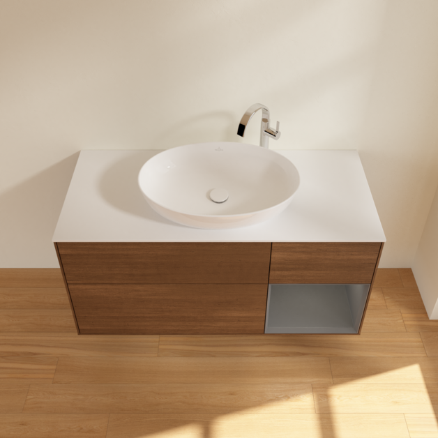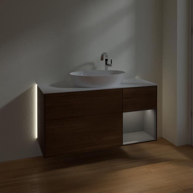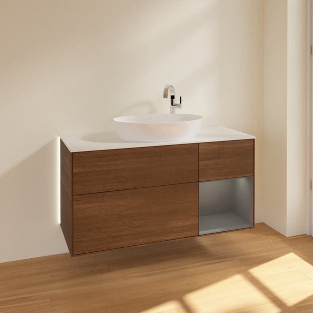 Тумба під раковину Villeroy & Boch Finion 120х50,1 см із підсвічуванням МДФ шпон волоського горіха/скло біле матове G951GKGN