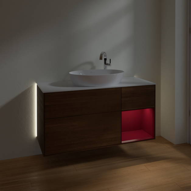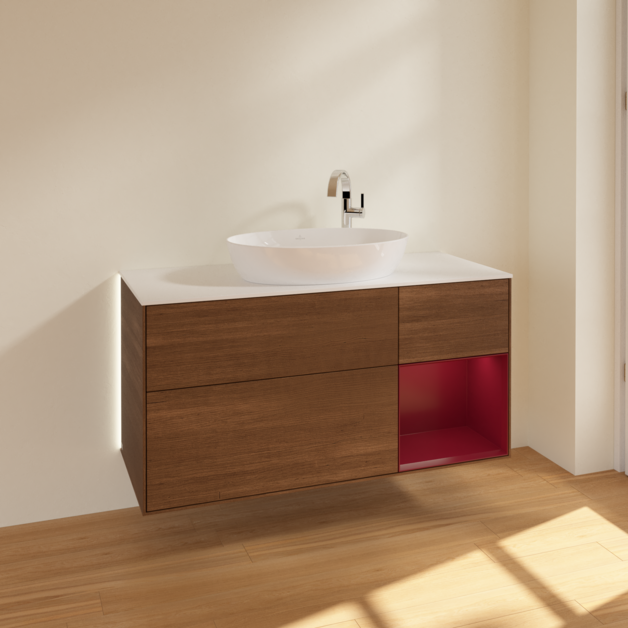 Тумба під раковину Villeroy & Boch Finion 120х50,1 см із підсвічуванням МДФ шпон волоського горіха/скло біле матове G951HBGN