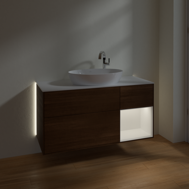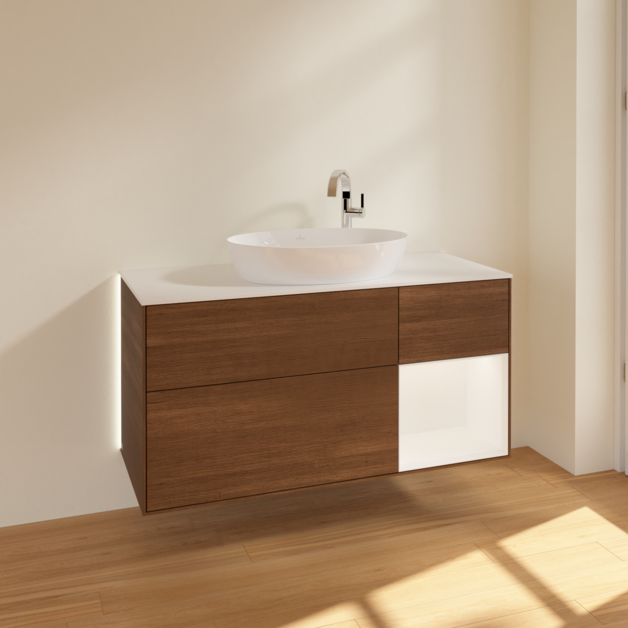 Тумба під раковину Villeroy & Boch Finion 120х50,1 см із підсвічуванням МДФ шпон волоського горіха/скло біле матове G951MTGN