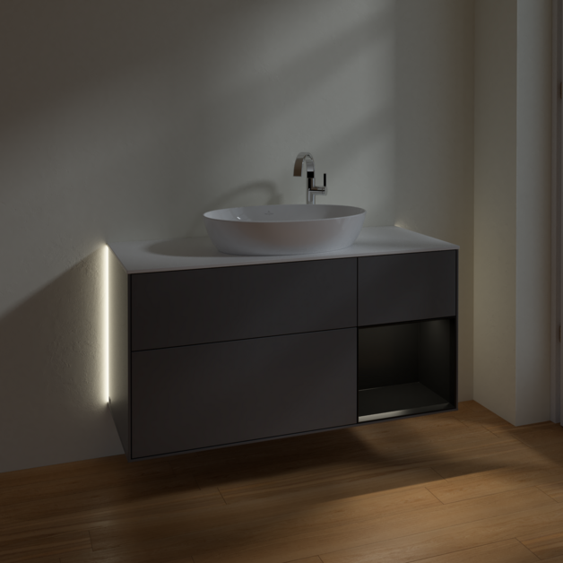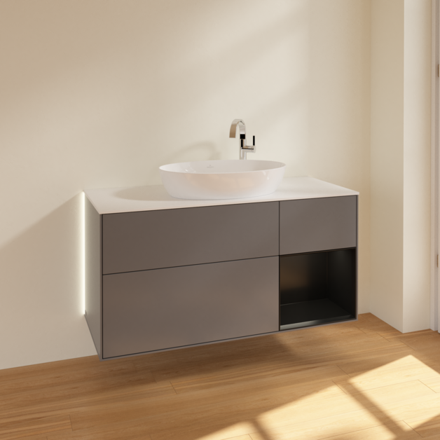 Тумба під раковину Villeroy & Boch Finion 120х50,1 см з підсвічуванням антрацит матовий лак/скло біле матове G951PDGK