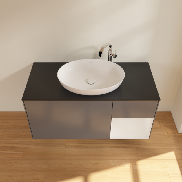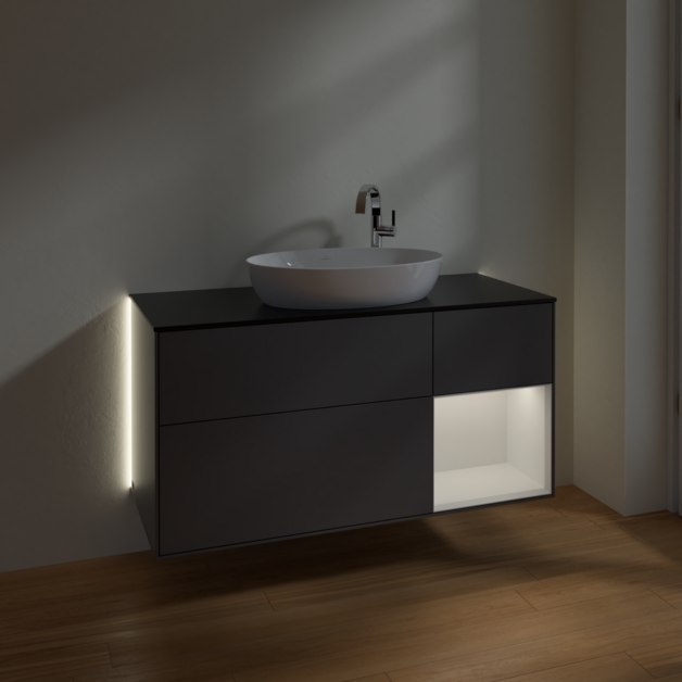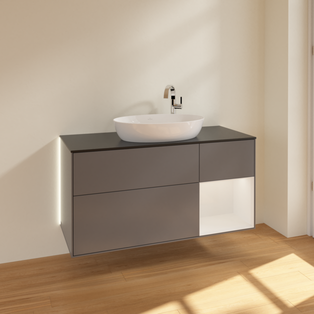 Тумба під раковину Villeroy & Boch Finion 120х50,1 см з підсвічуванням антрацит матовий лак/скло чорне матове G952GFGK
