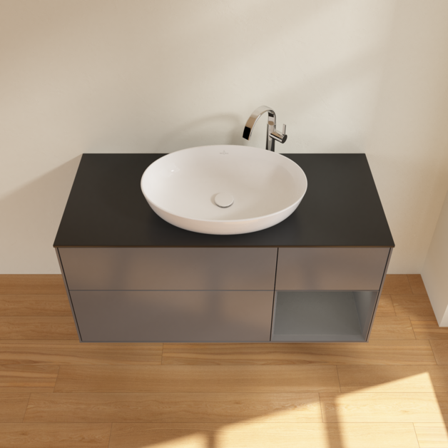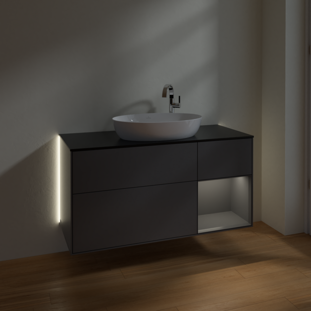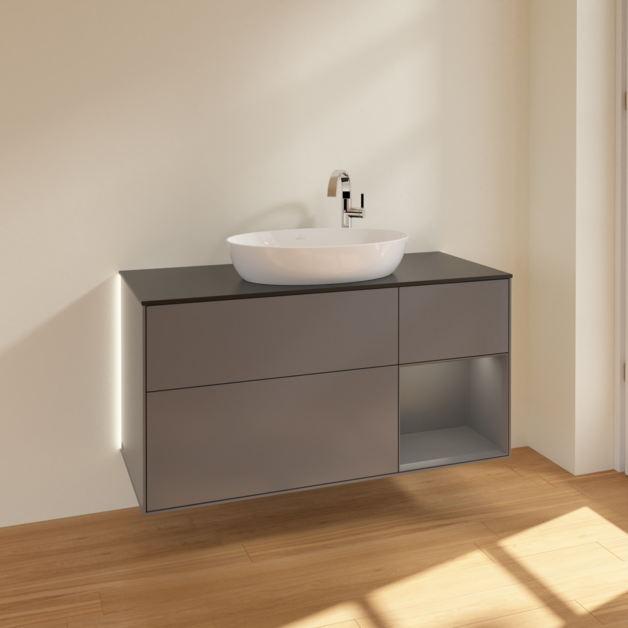 Тумба під раковину Villeroy & Boch Finion 120х50,1 см з підсвічуванням антрацит матовий лак/скло чорне матове G952GKGK
