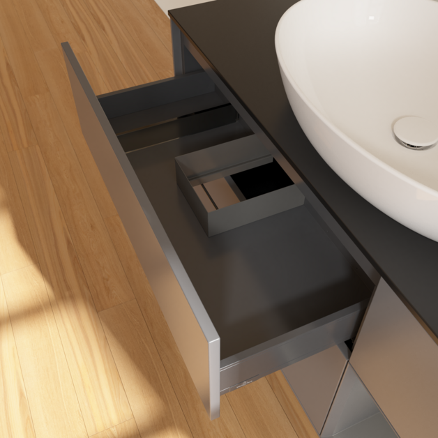 Повний розширення . Завдяки функції повного розширення, ящикиВи можете повністю висунути. Весь їх вміст чітко і зручніВийти. Більше вам не потрібно заглиблюватися у далекі відсіки ящика -Завдяки меблям у ванній кімнаті з повною номінацією ви отримуєте повний огляд.