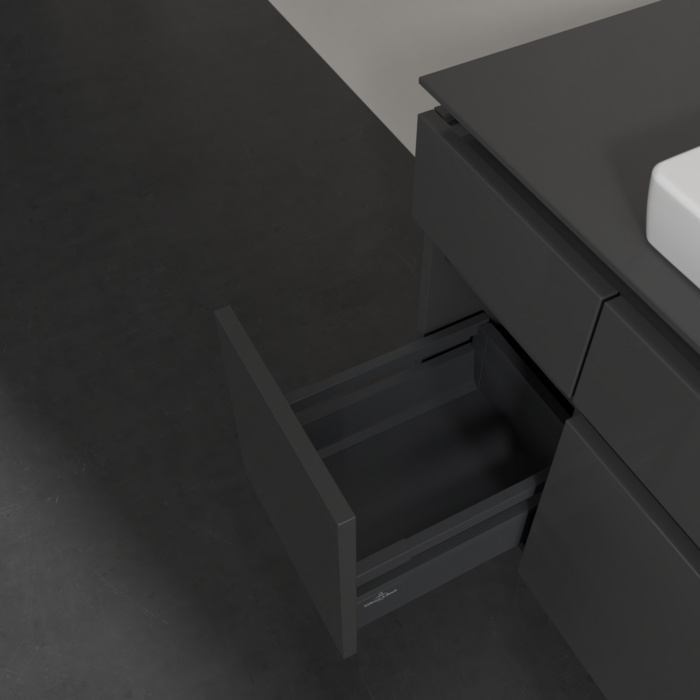 Практичні внутрішні перегородки. Продумані внутрішні перегородки в меблях для ванної кімнати Villeroy & Boch дозволяють індивідуально підтримуватипорядок у ванній кімнаті. Різні елементи, такі як регульовані скляні перегородки та ящики для різних розмірів аксесуарів, забезпечують порядок і хороший огляд.