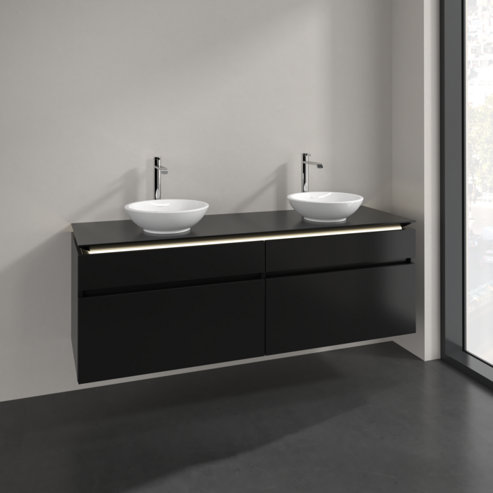 Тумба під раковину Villeroy&Boch Legato 160х55 см з підсвічуванням МДФ/ДСП чорний матовий лак B600L0PD