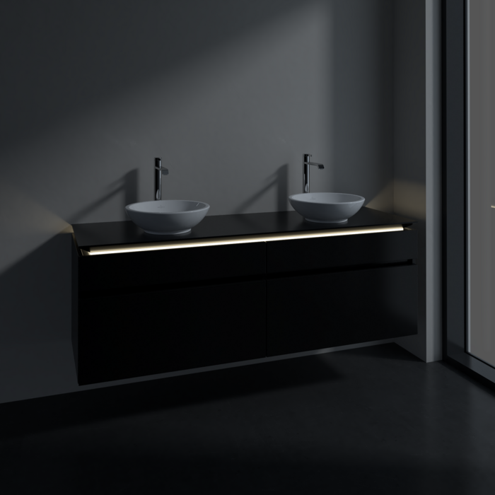 Тумба під раковину Villeroy & Boch Legato 160х55 см з підсвічуванням МДФ/ДСП чорний матовий лак