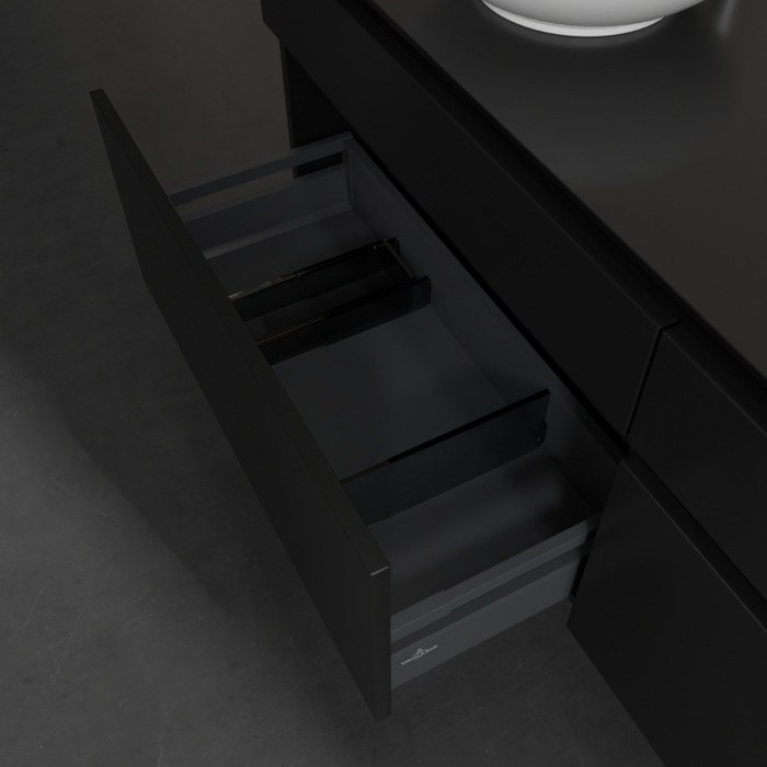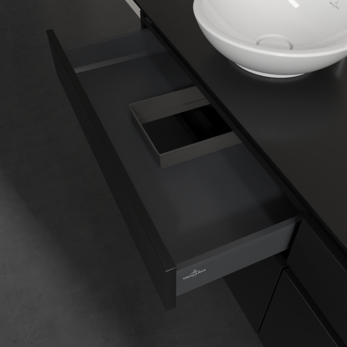 Практичні внутрішні перегородки. Продумані внутрішні перегородки у меблях для ванної кімнати Villeroy & Boch дозволяють індивідуально підтримуватипорядок у ванній кімнаті. Різні елементи, такі як регульовані скляні перегородки та ящики для різних розмірів аксесуарів, забезпечують порядок і хороший огляд.