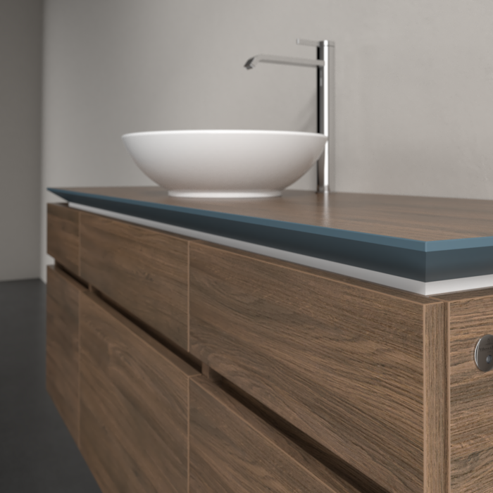Legato — це комплексна колекція для ванних кімнат у лаконічному та елегантному стилі, яка відповідає найвимогливішим вимогам. Прямі лінії виробів із кераміки ідеально доповнюють виразний дизайн меблів цієї успішної колекції. Завдяки вишуканим деталям, таким як опціональне вбудоване світлодіодне освітлення з регульованою яскравістю та скошені краї, тумби під раковину для накладного монтажу здаються широкими.