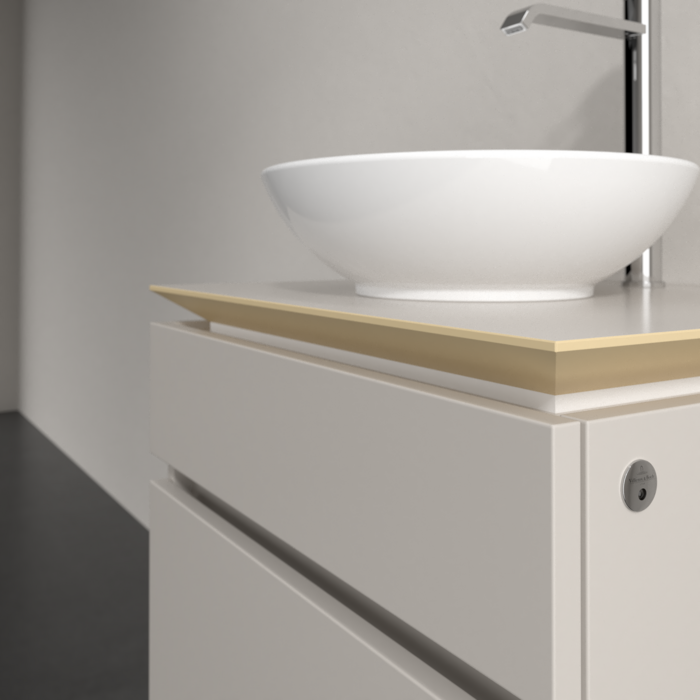 Legato — це комплексна колекція для ванних кімнат у лаконічному та елегантному стилі, яка відповідає найвимогливішим вимогам. Прямі лінії виробів із кераміки ідеально доповнюють виразний дизайн меблів цієї успішної колекції. Завдяки вишуканим деталям, таким як опціональне вбудоване світлодіодне освітлення з регульованою яскравістю та скошені краї, тумби під раковину для накладного монтажу здаються ширяючими.