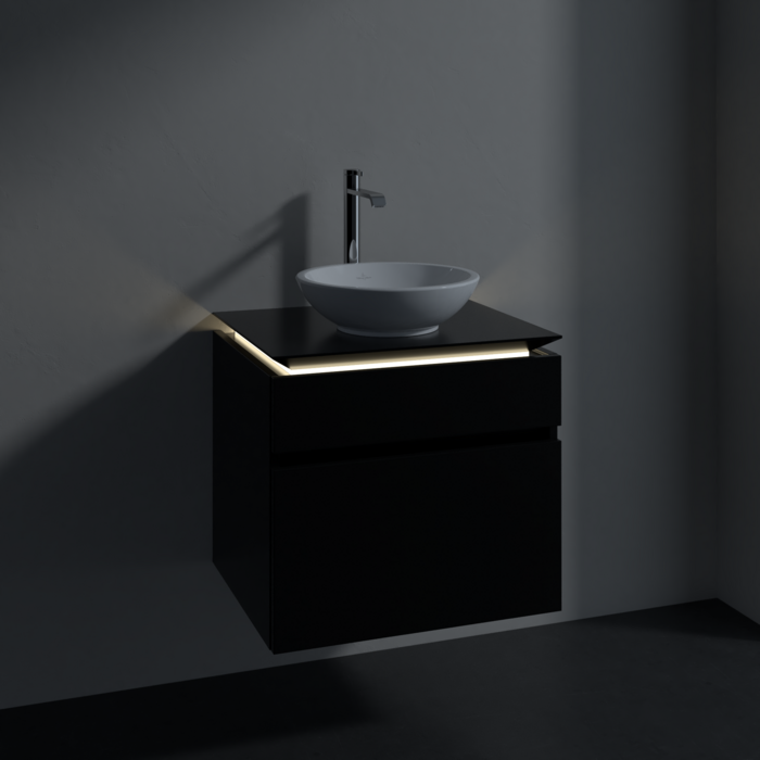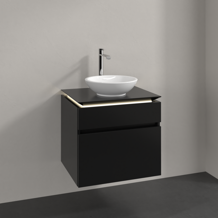 Тумба під раковину Villeroy&Boch Legato 60х55 см з підсвічуванням МДФ/ДСП чорний матовий лак B568L0PD