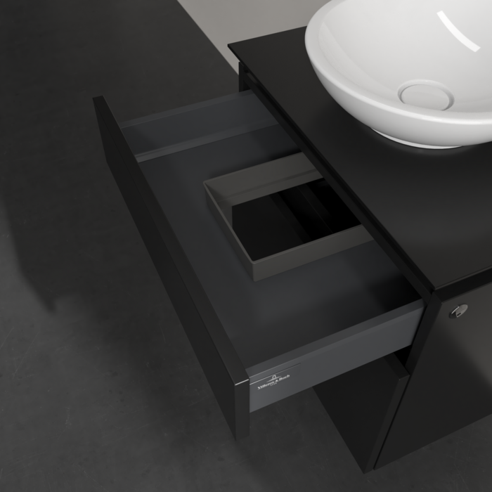 Практичні внутрішні перегородки. Продумані внутрішні перегородки у меблях для ванної кімнати Villeroy & Boch дозволяють індивідуально підтримуватипорядок у ванній кімнаті. Різні елементи, такі як регульовані скляні перегородки та ящики для різних розмірів аксесуарів, забезпечують порядок і хороший огляд.