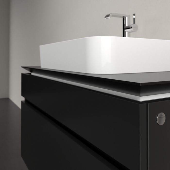 Legato — це комплексна колекція для ванних кімнат у лаконічному та елегантному стилі, яка відповідає найвимогливішим вимогам. Прямі лінії виробів із кераміки ідеально доповнюють виразний дизайн меблів цієї успішної колекції. Завдяки вишуканим деталям, таким як опціональне вбудоване світлодіодне освітлення з регульованою яскравістю та скошені краї, тумби під раковину для накладного монтажу здаються ширяючими.