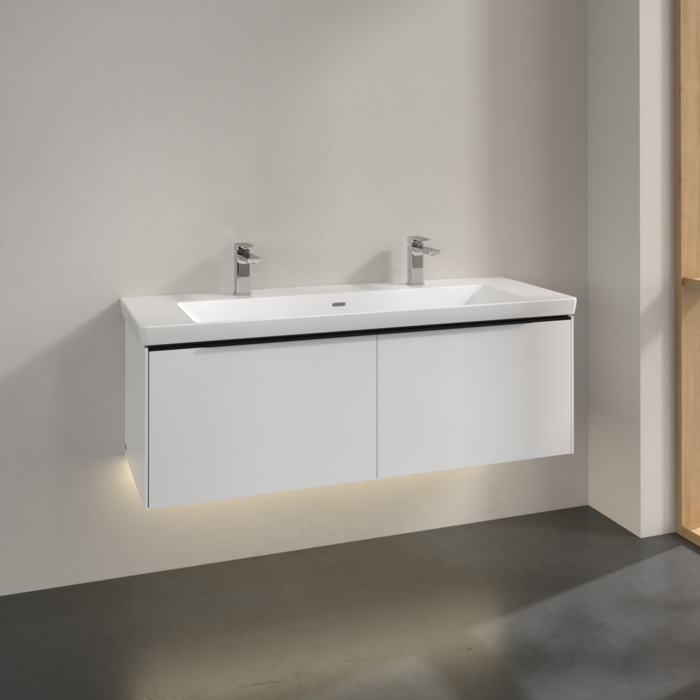 Підсвічування з плавним регулюванням світла для меблів для ванної. Завдяки меблів для ванної з вбудованим підсвічуванням Villeroy & Boch у вас у будь-якій ситуації буде правильне світло. Підсвічування зенергозберігаючими світлодіодними лампами та плавним регулюванням світла може змінюватися за допомогою дистанційного керування від холодного до теплого білого світла. Вишукані елементи підсвічування створюють відповідний настрій у ванній кімнаті.