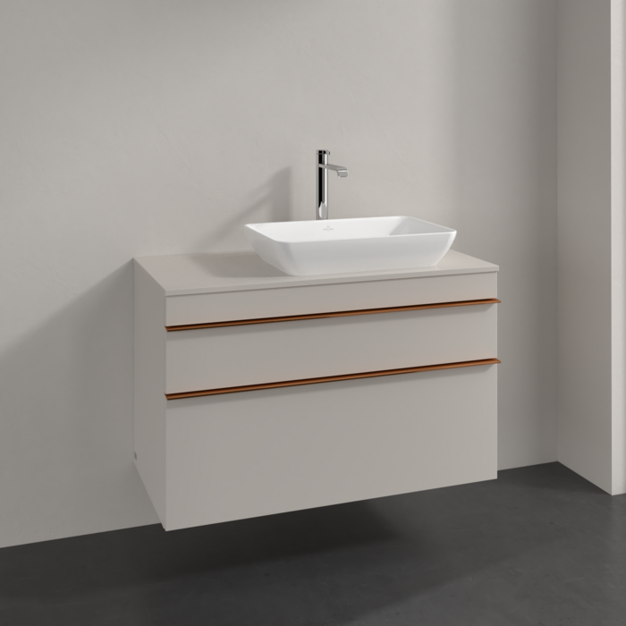 Тумба під раковину Villeroy & Boch Venticello 95,7х50,2 см ДСП м'який сірий/ручка мідь A94305VK