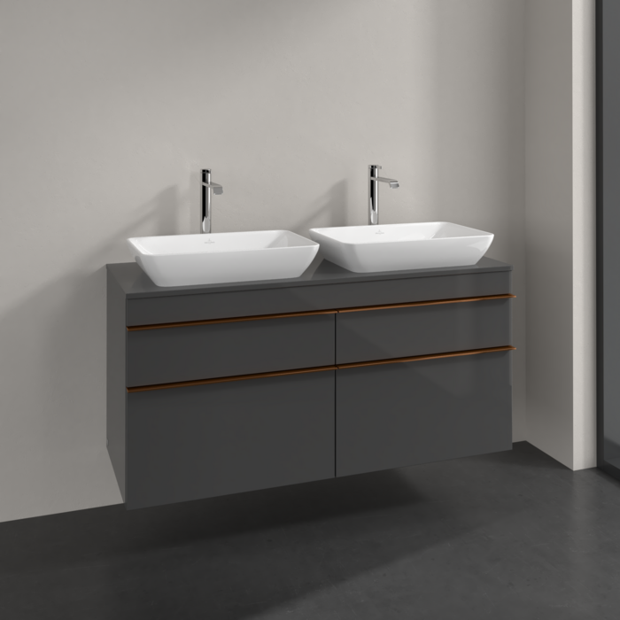 Тумба під раковину Villeroy & Boch Venticello 125,7х50,2 см МДФ глянсовий сірий/ручка мідь