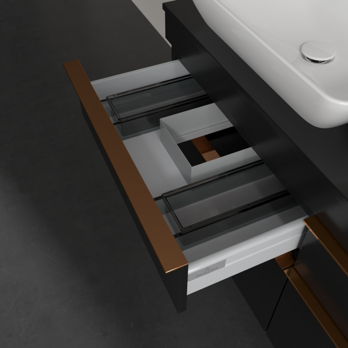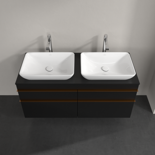 Тумба під раковину Villeroy & Boch Venticello 125,7х50,2 см МДФ чорний матовий лак/ручка мідь A94405PD