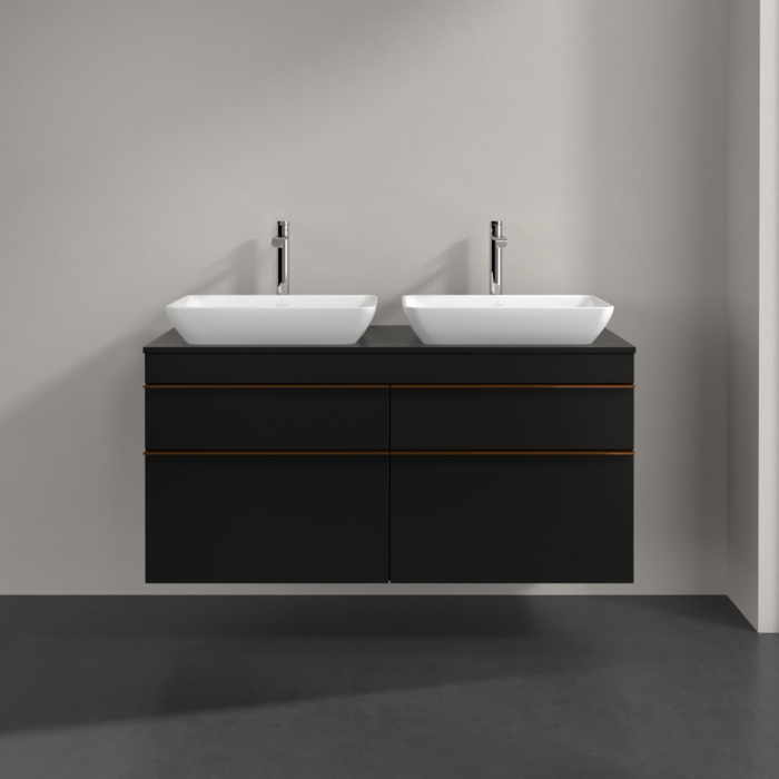 Тумба під раковину Villeroy & Boch Venticello 125,7х50,2 см МДФ чорний матовий лак/ручка мідь