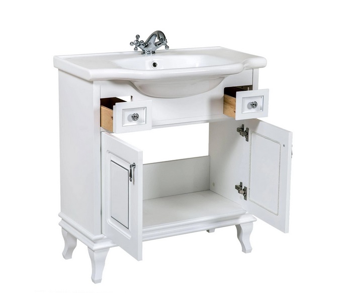Тумба підлогова Аквародос Беатріче 80 см з раковиною New Classic ДСП/МДФ білий патина хром АР000040197