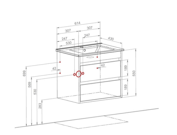 Тумба підвісна Аквародос Шельф 65 см зі стільницею Loft-Iron та раковиною Olive ДСП нордленд АР000085192