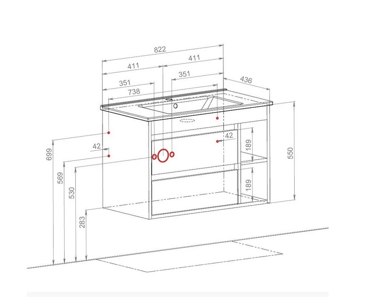 Тумба підвісна Аквародос Шельф 85 см зі стільницею Loft-Iron та раковиною One ДСП нордленд АР000085185