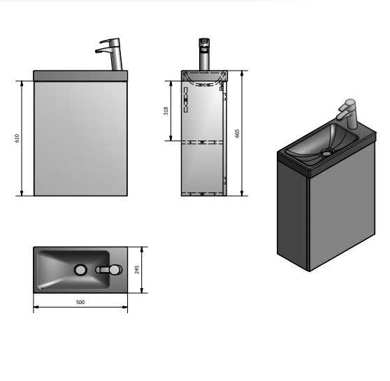 Тумба підвісна Fancy Marble Java 50x24,5 см з раковиною Linnea 500 МДФ сірий ШН-500С