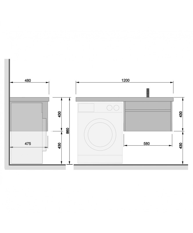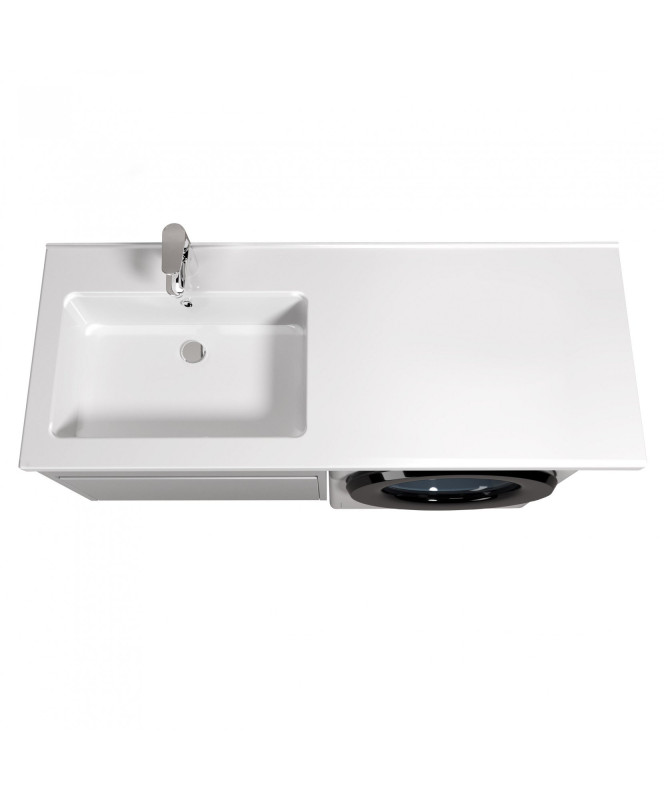 Wing 60-A-W Hutter з Rodeo 120 L Washbasin було розроблено спеціально для розміщення над пральною машиною, що робить його ідеальним вибором для економії місця та збільшення функціонального місця у ванній кімнаті. Комплект крила дає елегантність інтер’єру та забезпечує високу практичність.