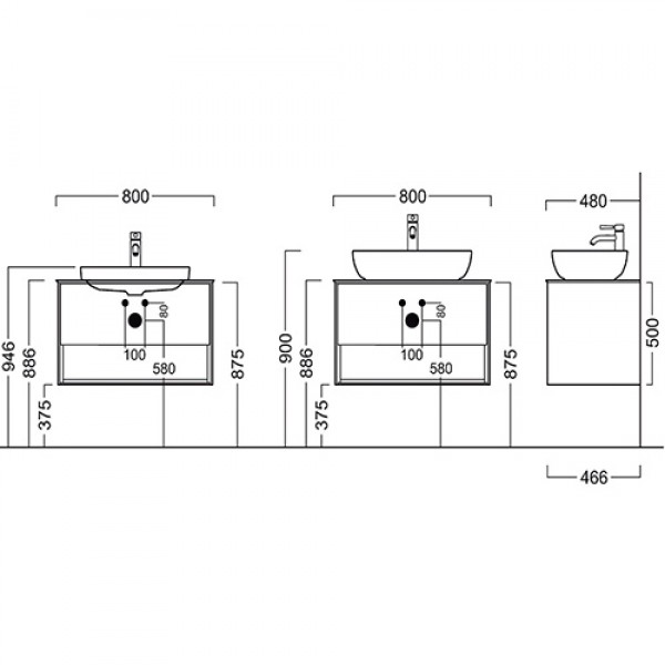 - Кількість раковин: під 1 раковину