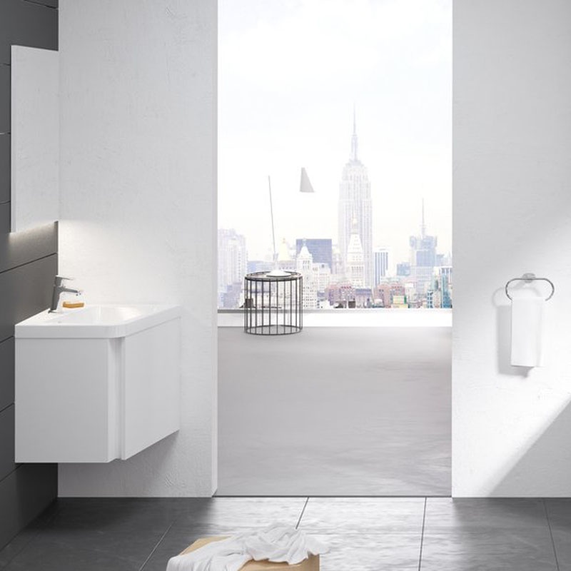 Найкращі речі - це найпростіші речі. Підвісні шафки з концепції 10 ° утворюють симбіоз, який представляє собою практичне і естетичне єдність з умивальниками 10 °, представленими в рівному виконанні і кутовому піднахилом 10 ° у напрямку ванної кімнати. Такий варіант забезпечує для рук достатньо вільного місця. Характерною особливістю шафок є декоративний виступ на фасаді, який також служить в якості ручки для зручного відкривання дверцят.