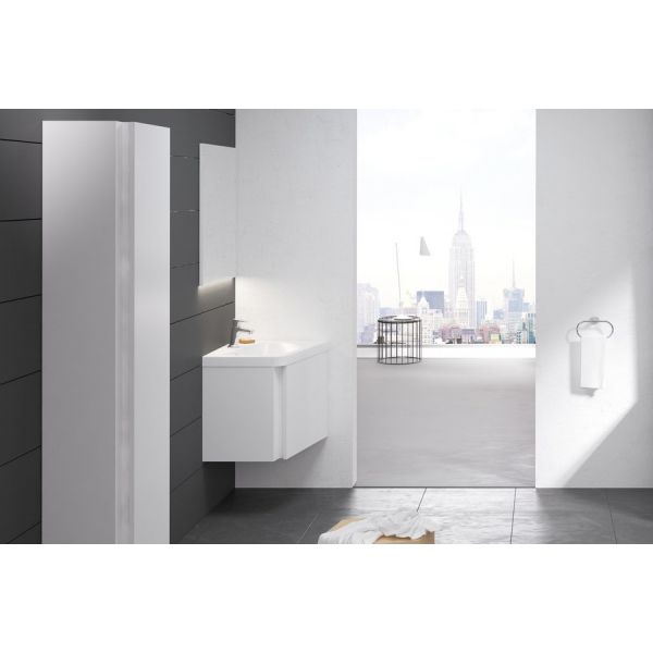 Стиль, що доповнює незвичайні форми кутового умивальника 10 °, легкий поворот якого забезпечує набагато більше простору в кутку ванної кімнати. Шафка пропонує об'ємне внутрішній простір і практичний ящик для зберігання дрібних речей. Три види декору (білий глянець, сірий глянець і темно-горіховий) дозволяють перетворити ванну кімнату і подарувати їй бажаний образ.