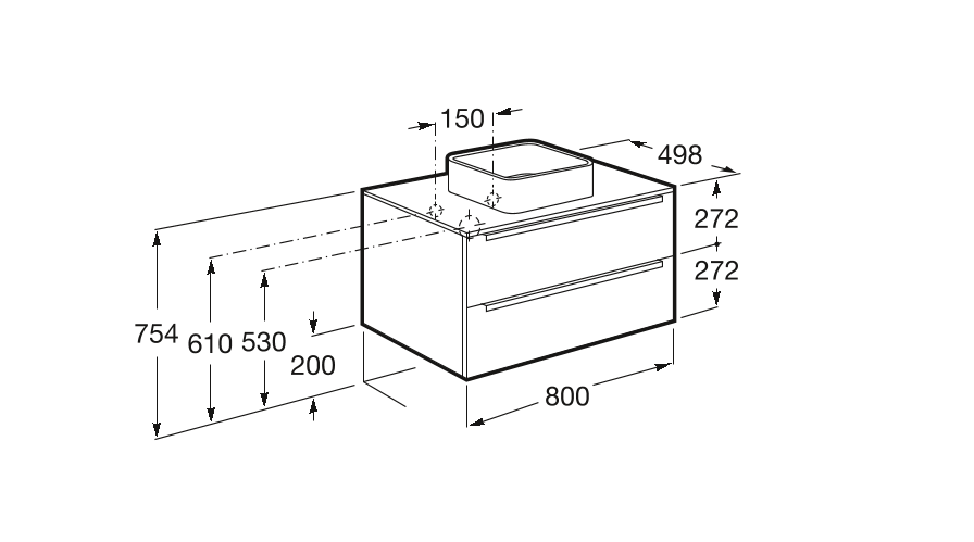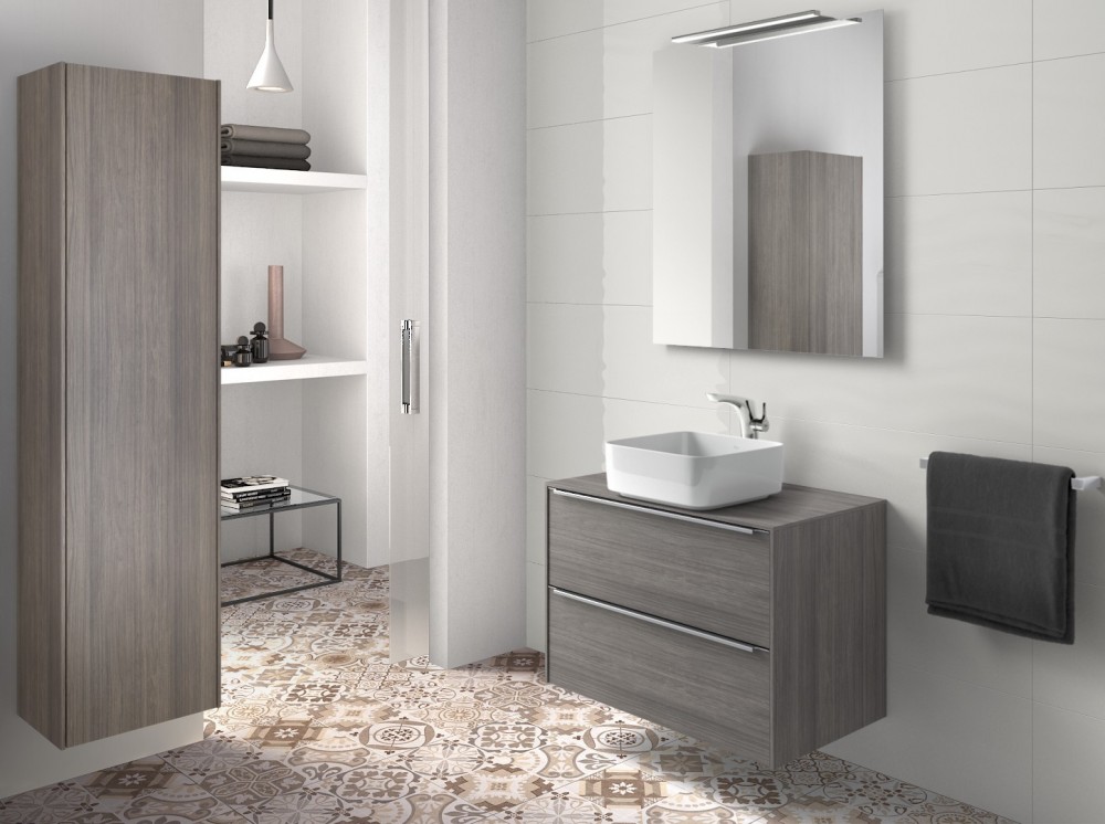 1) Тумба під раковину-чашу підвісна Roca Inspira 80х49.8 см з двома ящиками МДФ дуб