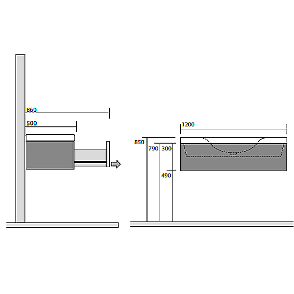 - Розмір (ВхШхГ): 300х1200х500 мм