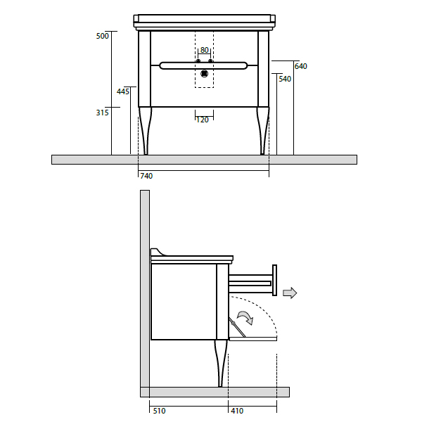 - Розміртумби без ніжок (ВхШхГ): 500х740х510 мм
