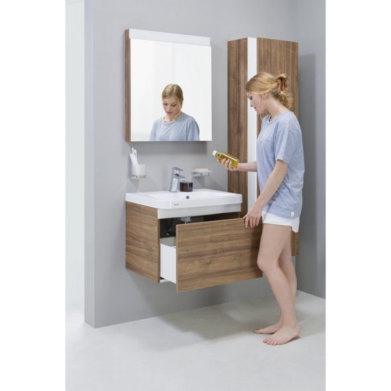 Дизайн, що йде Вам назустріч. Скористайтеся двома варіантами ширини і дизайну, що доповнює форми умивальника 10 °. Шафка пропонує об'ємне внутрішній простір і практичний ящик для зберігання дрібних речей. Три види декору (білий глянець, сірий глянець і темно-горіховий) дозволяють перетворити ванну кімнату і подарувати їй бажаний образ.