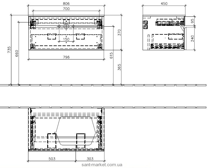 - 1 висувний ящик