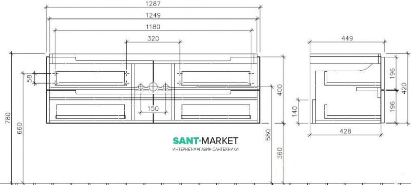Тумба під раковину Villeroy & Boch Subway 2.0 підвісна 128.7x44.9x42 біла A69100DH