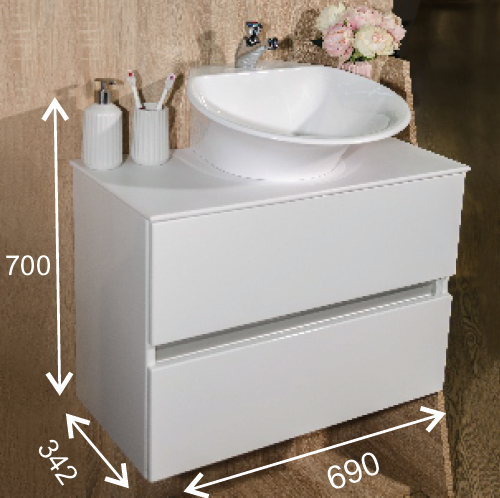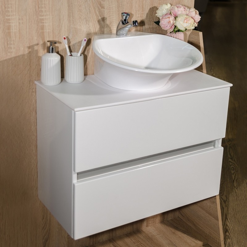 Тумба підвісна Буль-Буль Rodos 690х342х700 мм з раковиною Nila білий зі стільницею Rodos (Rodos + 7305101)