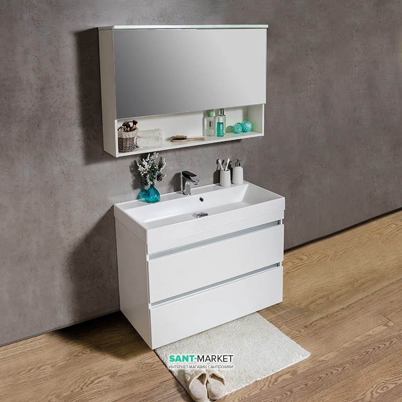 Тумба підвісна Буль-Буль Sherman 991х442х718 із раковиною Signe 1000 білий