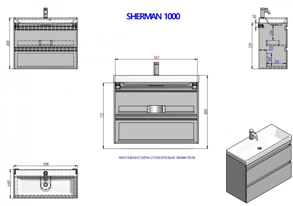 1) Тумба підвісна Буль-Буль Sherman 991х442х718
