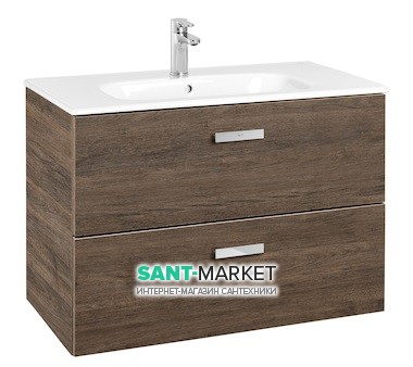 Тумба підвісна МДФ кедр з раковиною для ванної Roca Victoria кераміка білий