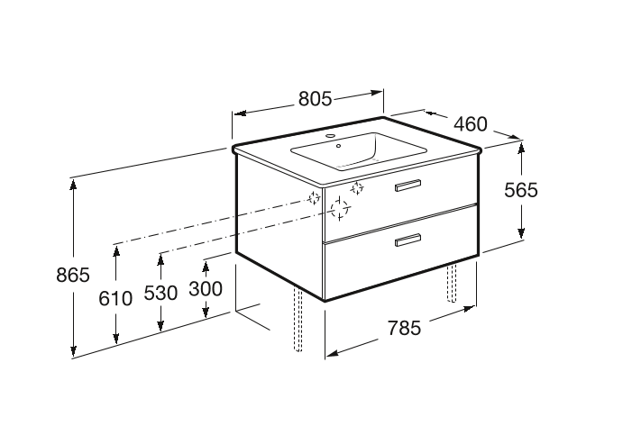 Тумба підвісна МДФ 80х46 кедр з раковиною для ванної Roca Victoria кераміка білий A855852423