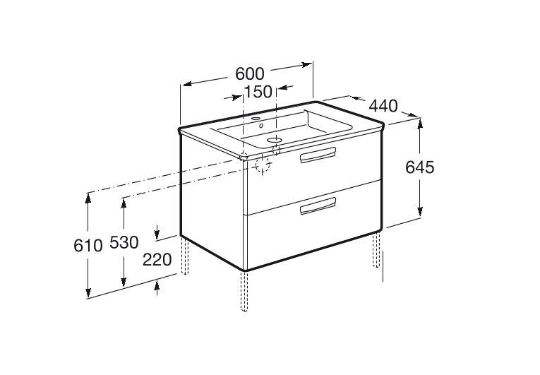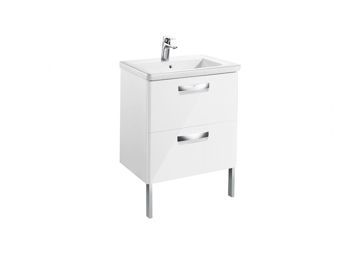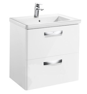 Тумба підвісна з двома ящиками МДФ 60х44 білий глянець з раковиною для ванної Roca Gap кераміка білий з сифоном A855997806