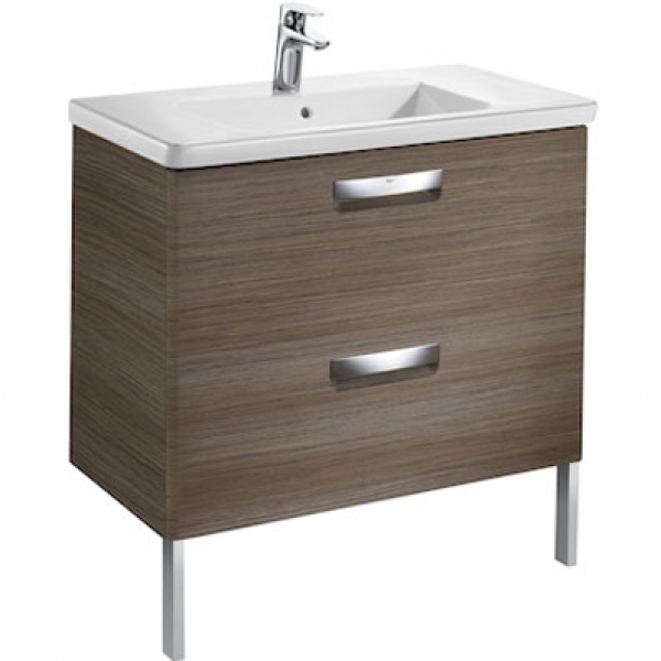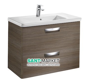 Тумба підвісна з двома ящиками МДФ 80х44 тик з раковиною для ванної Roca Gap кераміка білий з сифоном A855998150